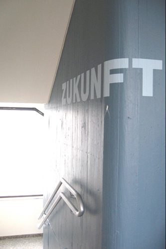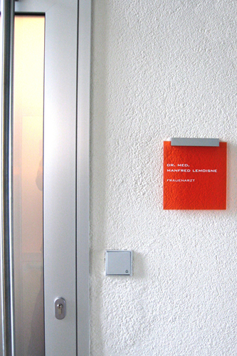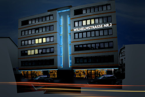 Ein moderner, lichtdurchfluteter Eingangsbereich empfängt den Besucher des Ärztezentrums Wilhelmstrasse. DP entwickelte ein neues Erscheinungsbild. Die grafische Gestaltung der Wände im Treppenhaus und die neue Beschilderung bilden gemeinsam ein übergeordnetes Leitsystem. Ergänzt wird die grafische Gestaltung durch passende Textpassagen, die den Besucher beim Vorübergehen in inspirierender Art auf die Inhalte der einzelnen Praxen hinweisen. Um den Treppenraum aufzuwerten wurde stimmungsvolle Beleuchtung eingesetzt. Die für einen Treppenraum ungewöhnlichen 4-strahligen Leuchten ermöglichen die punktuelle Betonung interessanter Details. Die Aufenthaltsqualität des Treppenraums wird durch eine Sitzbank in jeder Etage die gleichzeitig als Heizungsverkleidung dient unterstrichen.