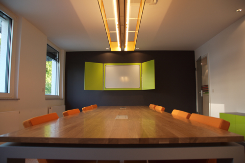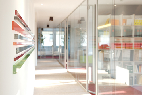2008_DASPROJEKT_design Für die größte niederländische Anwalts- und Steuerberaterkanzlei hat DP_design die neue Location in einer durchgehenden Gestaltungslinie entworfen. Sie durchzieht die neuen Büroräume und inkludiert Pflanzen, Farben, Materialien sowie graphische Elemente zu gleichen Teilen. Das neue Ambiente bietet ein offenes Raumkonzept mit verschiedensten Möglichkeiten, sich zurückzuziehen: sei es zu einem Kaffee in die Bibliothek oder in das Gästebüro mit Erholungswert sowie das neue Archiv zum Bücher wälzen. Die abtrennenden Glaswände erlauben den vollen Durchblick in das alles verbindende Foyer, bieten dem Mitarbeiter dennoch eine Privatsphäre. Hochfloriger Teppich und Holz ersetzen den üblichen Velour–Bodenbelag, die Tapete wird durch glatt gespachtelte Wandflächen ersetzt.